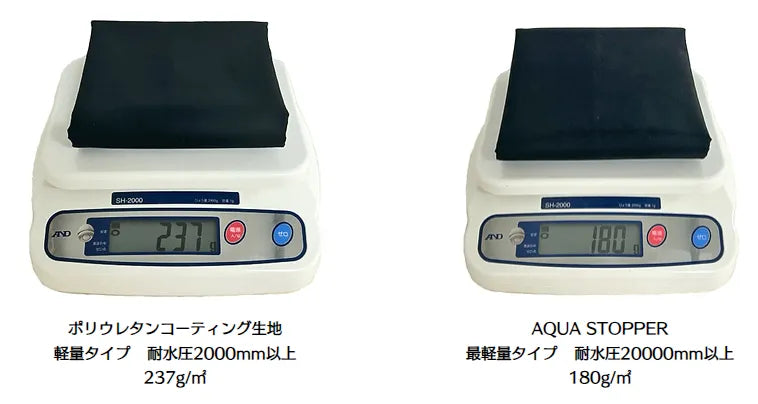 AQUA STOPPERは耐水性、撥水性、軽量な仕上がりを兼ね揃えた