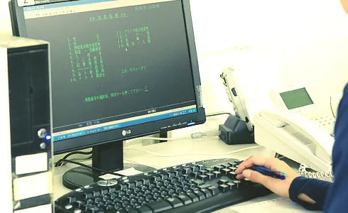 名古屋物流倉庫では、自社開発システムを用いて受発注・在庫情報を一元管理。業界に先駆けて30年前より導入した情報システムで、業務の効率化を図っております。