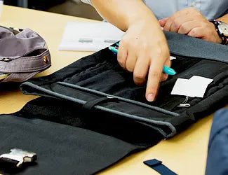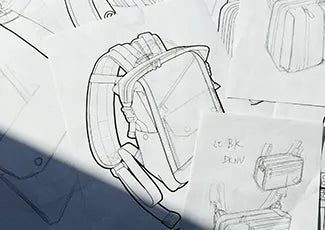中に入れる物や使用シーンから、必要な機能・強度を設定。コストバランスを考慮しながら、素材・部材の選定や、縫製の指示など生産に必要な詳細項目をまとめていきます。